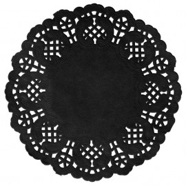 Napperons dentelle papier ardoise (noir) les 10 : ces napperons dentelle papier ardoise de 35 cm sont parfaits pour décorer, en set de table ou présenter les pâtisseries. Idée pour déco de table festive, décoration festive, DIY, anniversaire, baptême, baby shower, mariage, thème baroque, romance, vintage, shabby chic, rétro.
