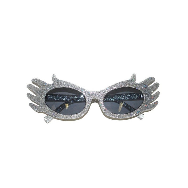 Lunettes argent pailleté solaires en forme de mains très agréable à porter, Accessoire déguisement pour compléter votre Tenue de Soirée ou votre Déguisement Disco, jupe Rock'n Roll, Legging Argent, Jupe Pailletée, Robe Sixties.