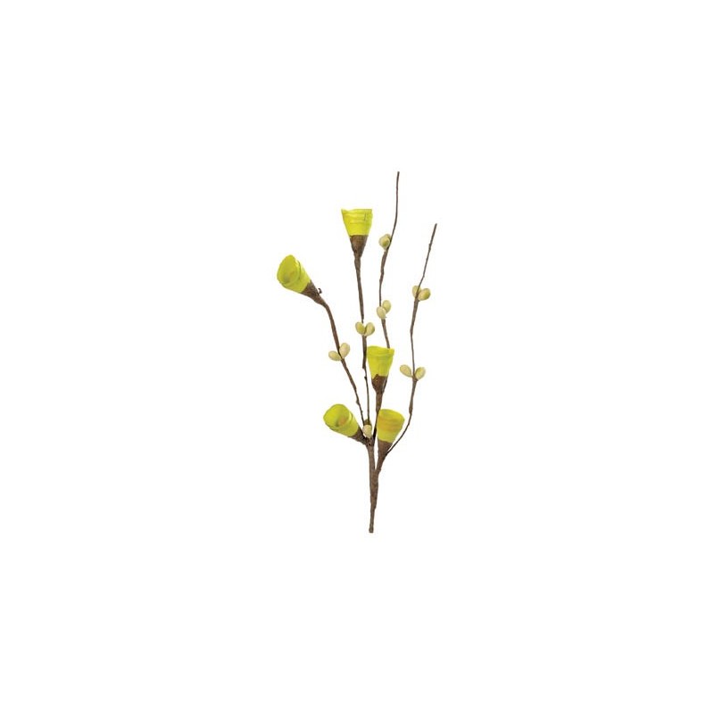 Cornets sur piquet avec branches ornées de petits cornets en bois léger avec une petite boule à l'intérieur et petites fleurs Zen festives en bois, Grand Piquet Cornets à mettre dans un vase, à accrocher sur un mur ou pour décorer la table pour une décoration originale et naturelle aux couleurs très tendances.