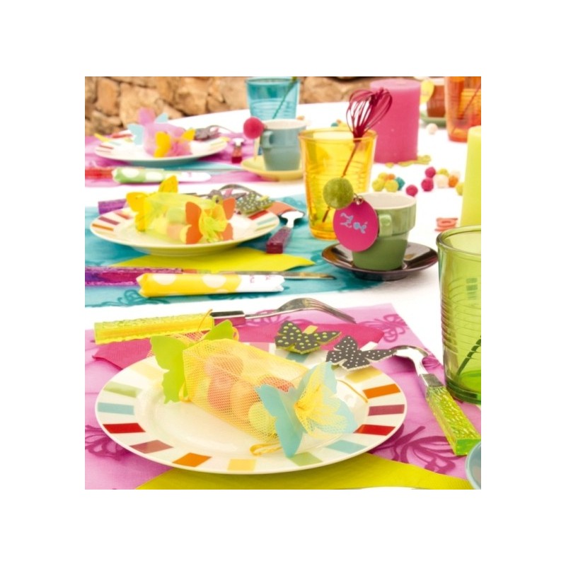 Etuis à Dragées avec Tulle Couleur Blanc, Vert Anis, Jaune, Fuschia, au choix avec liens satin assortis très Chic pour une Présentation Réussie, Sachet de 6 Etuis à Dragées recouvert de Tulle Couleur en Polypropylène Transparent (étuis livrés vide et autres accessoires non fournis). Etuis Tulle Couleur pour 6 à 10 Dragées, Chocolat ou Confiserie. Etuis à Dragées pour Mariage, Fêtes, Tables Festives, Garden Party, Anniversaire, Réceptions.