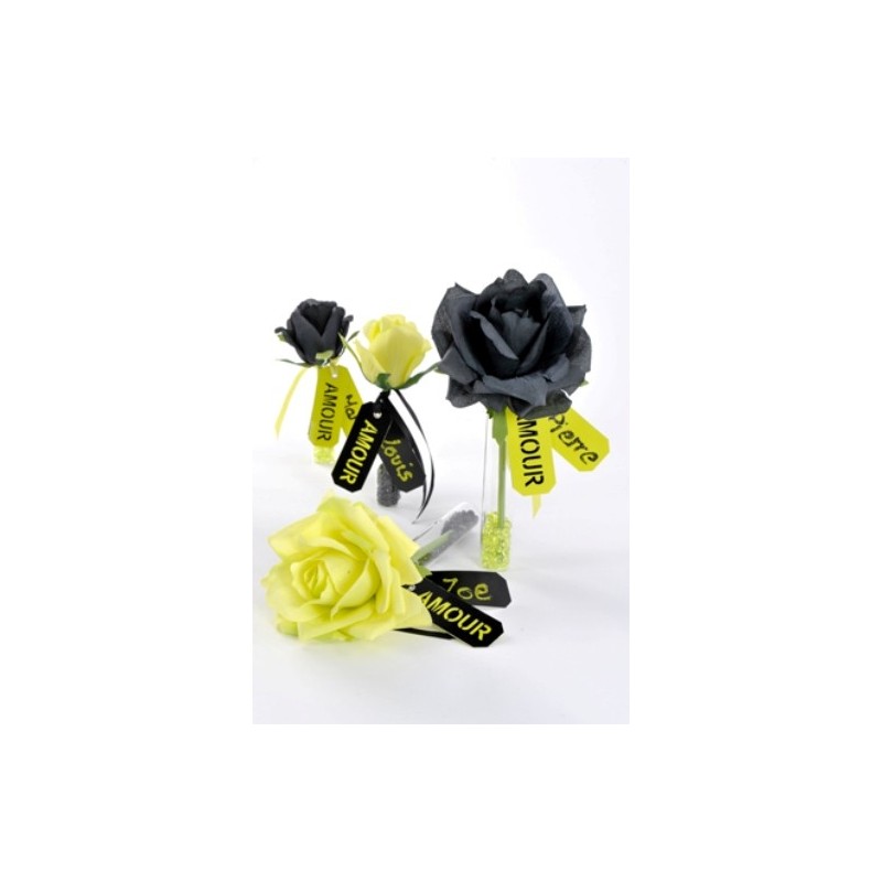 Marque-place en Forme d'étiquette en 2 parties reliées avec sur la première étiquette le mot amour découpé à personnaliser par de la couleur pour faire ressortir les lettres Amour et une partie neutre à personnaliser, les 2 Etiquettes sont reliées par un oeillet orné de deux superbes rubans satin qui se déclinent en 10 couleurs unies tendances pour une décoration de table et de Fête Raffinée et Glamour.