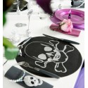 Sachet de 6 sets de table ronds tête de mort argent design intissé noir (autres accessoires non fournis).
