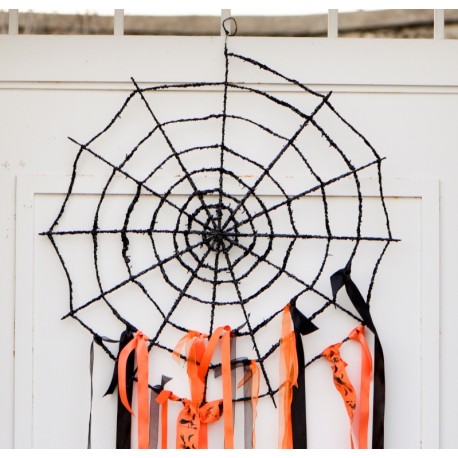 Déco toile d'araignée noire en métal pailleté : cette déco toile d'araignée Halloween (spider web) géante design est en métal pailleté noir à suspendre. Idée déco pour centre de table, Anniversaire, fête déguisée, thème pirate, cinéma, vampire, Mariage gothique.