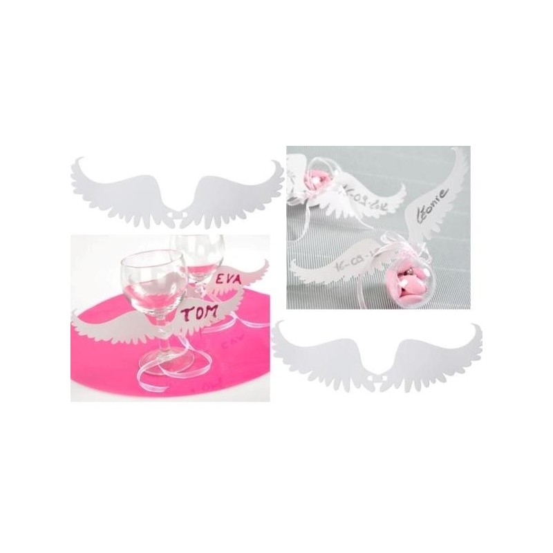 Sachet de 6 Etiquettes ailes d'ange (marque-place) livrées à plat. (autres accessoires non fournis).