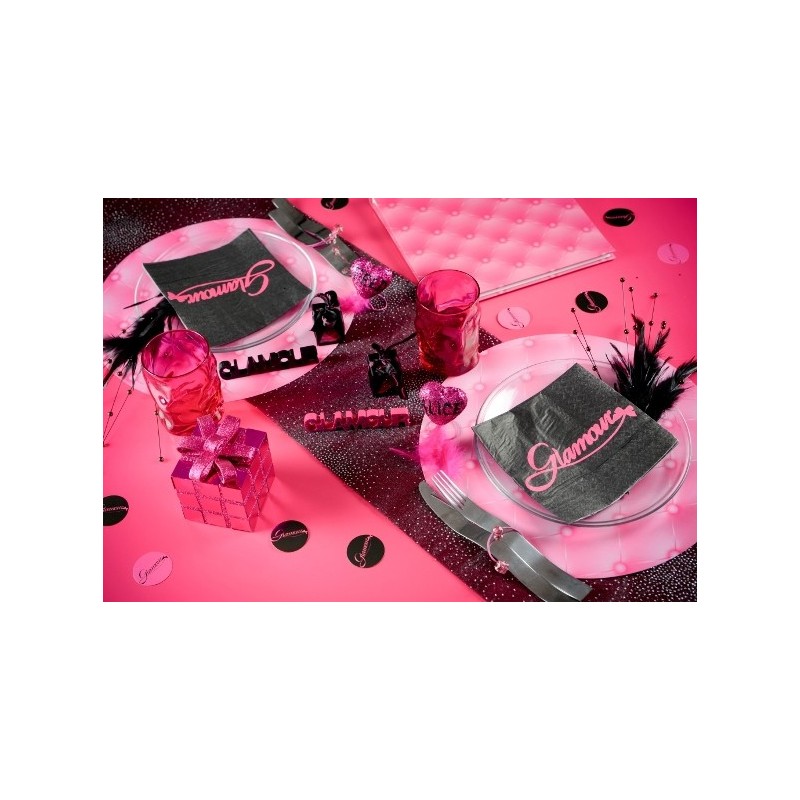 Set de table Glamour fuschia en carton fin avec motif effet capitonné fuschia et dos de couleur blanc uni à compléter avec la collection Glamour pour dresser une déco de table glamour et féerique !