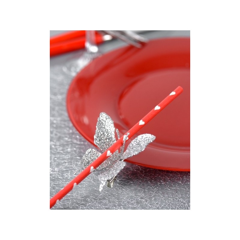 Sachet de 20 Pailles rouges coeurs blancs en papier. (autres accessoires non fournis.)