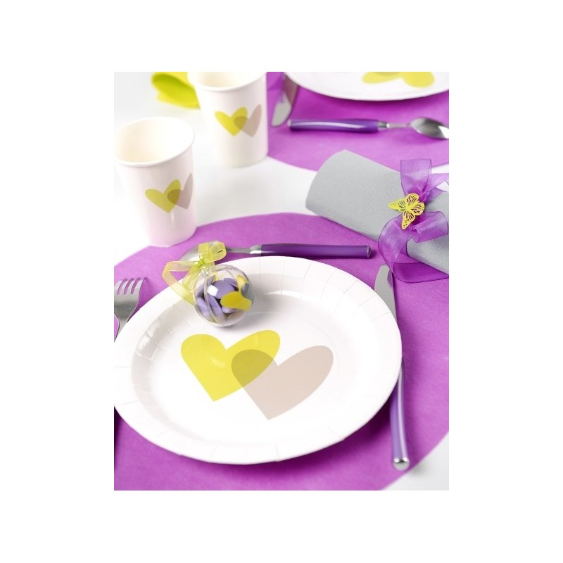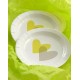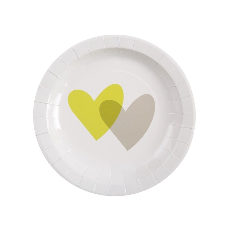 Sachet de 10 Assiettes coeur vert anis coeur gris carton blanc rondes. (autres accessoires non fournis.)