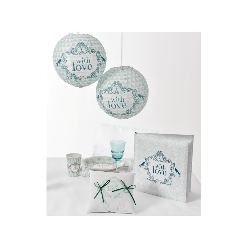 Livre d'or vintage vert: ce livre d'or vintage vert avec inscription with love comprend 20 pages soit 44 feuilles blanches qualité luxe avec couverture lisse. Idée pour anniversaire, baptême, mariage chic, mariage romantique, theme vintage, shabby chic, rétro, fêtes, nouvel an.