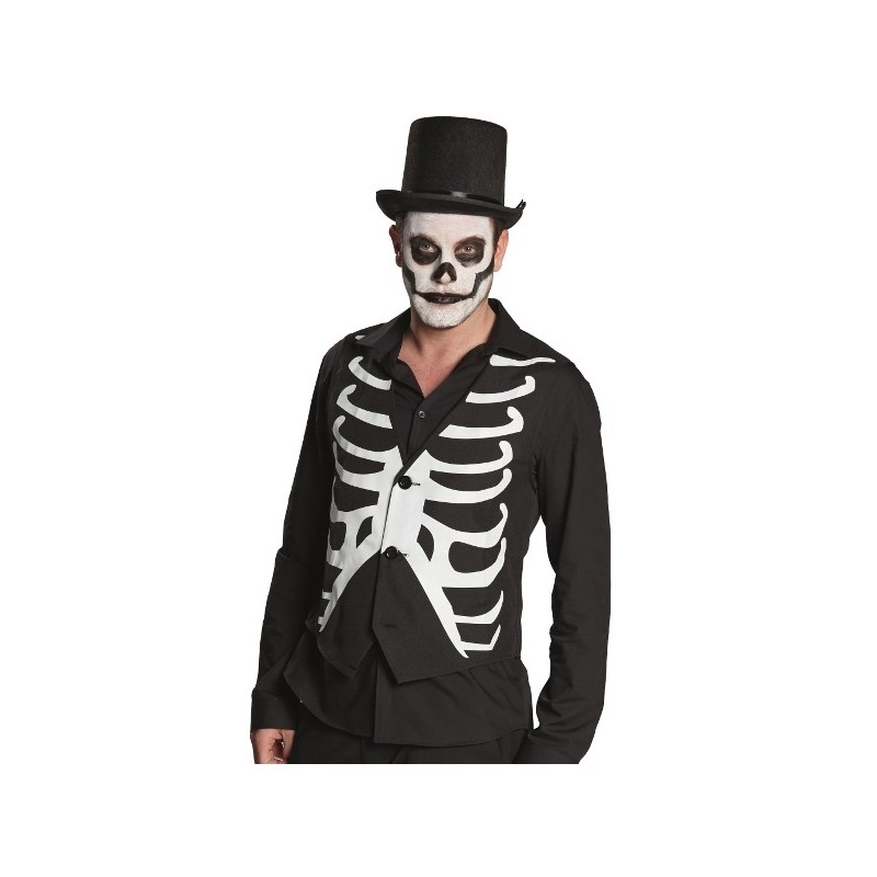 Déguisement gilet squelette homme, livré sur cintre. (pantalon noir vendu séparément et autres accessoires non fournis)
