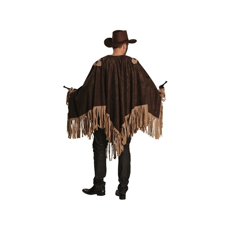 Déguisement poncho cowboy adulte : ce déguisement poncho cowboy adulte est pour homme et femme très classe en tissu aspect suédine brun et marron clair qualité de luxe. Idée pour carnaval, fêtes déguisées, thème farwest, mexicain.