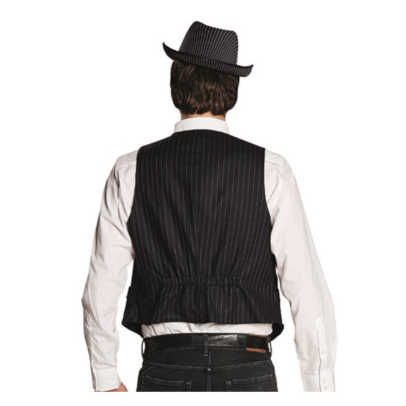 Costume adulte confortable et agréable à porter, facile d'entretien, lavable et repassable, pour fêtes et soirées costumées, veste gilet Al Capone à porter seule ou à compléter avec un pantalon de costume, chapeau borsalino pour un look classe et stylé.