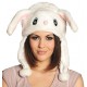 Bonnet peluche lapin blanc adulte mixte, vendu seul. (autres accessoires non fournis)