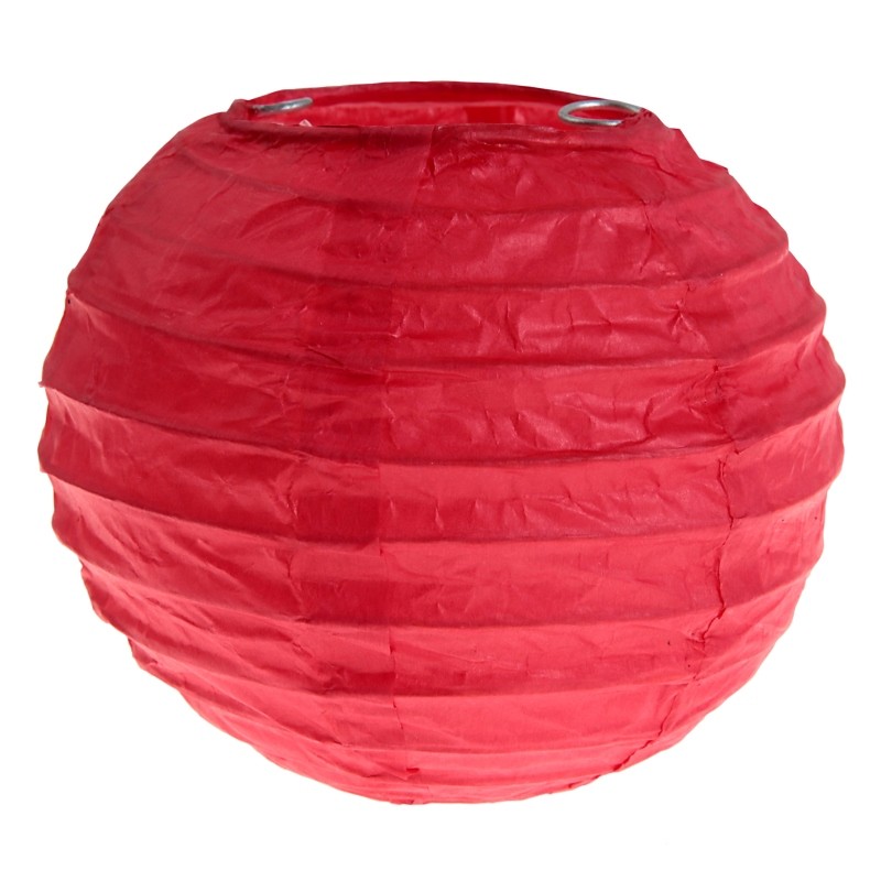 Lanterne boule chinoise en papier rouge rond avec 2 anneaux métalliques et une armature métallique, lanterne à suspendre à l'aide de ruban, fil métallique ou fil nylon ou à poser, cette lanterne ne fonctionne pas avec des bougies.