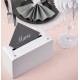 Cette tirelire valise est en carton blanc rigide en forme de valise : ouverture pour les enveloppes, liens en élastique blanc avec un bouton métallique de couleur argent de chaque côté sur le dessus pour la fermeture, valise à personnaliser selon le thème de fête ou de mariage.