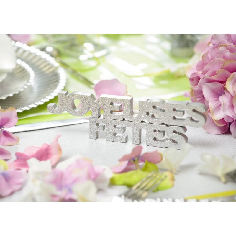 Idée mot joyeuses fêtes pour décorer centre de table, bouquet de fleurs pour fêter un événement... et créer une décoration chic et stylée.