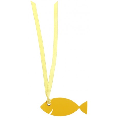 Étiquettes poisson jaune carton avec ruban les 12 : ces étiquettes poisson jaune (forme poisson) sont en carton de 8 x 3.2 cm avec ruban satin de 16 cm, à personnaliser, à utiliser en étiquette ou en marque place pour décoration, déco de table festive, anniversaire, baptême, emballage cadeau, mariage, scrapbooking, loisirs créatifs.