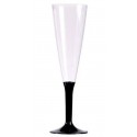 Ces flûtes à champagne sont en plastique transparent avec pied noir en plastique, le verre et le pied s'emboîtent par pression, flûtes jetables et réutilisables parfaites pour une déco de table stylée.
