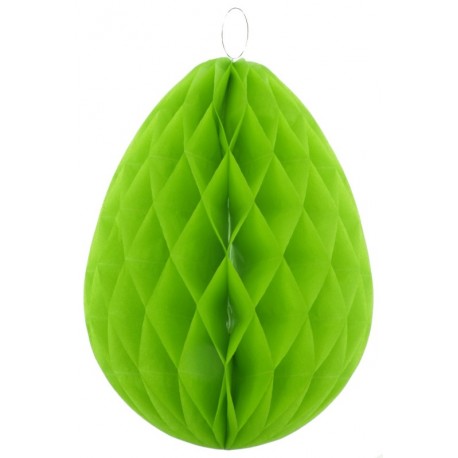 Ces oeufs alvéolés sont vert anis en papier de soie forme oeuf style nid d'abeille, avec lien en plastique transparent pour les suspendre, ils se déplient facilement pour former un oeuf grâce à des petits trombones pour les maintenir.
