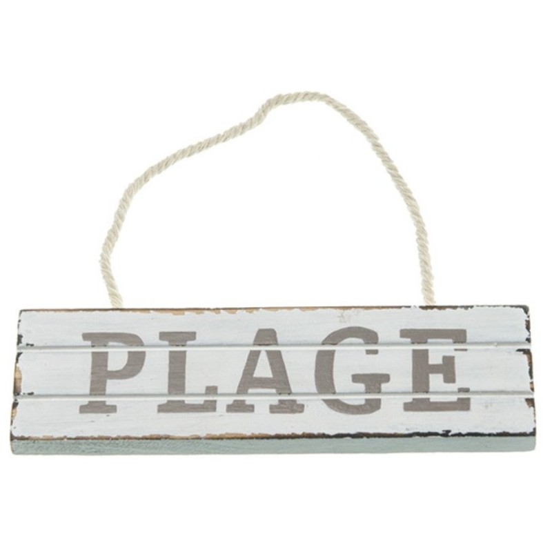 Cette pancarte plage est en bois de couleur blanc et taupe, inscription plage avec corde naturelle pour l'accrocher sur un mur ou la suspendre, pancarte en bois pour créer une déco stylée, elle s'utilise en intérieur et en extérieur.
