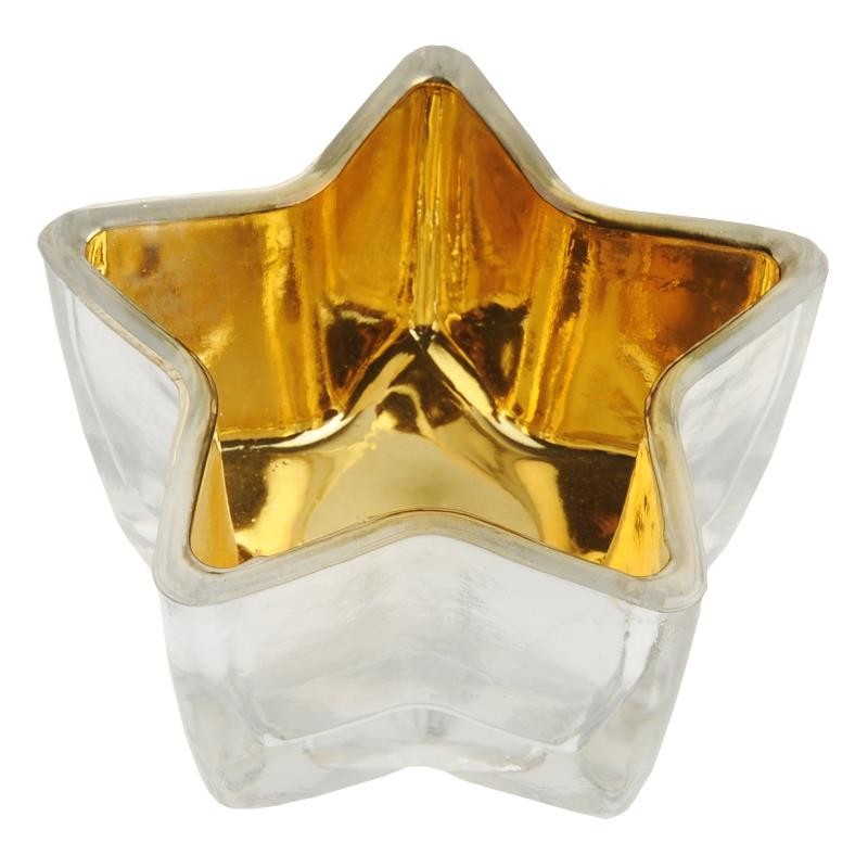 Ces photophores étoile métallisés sont des bougeoirs en verre en forme d'étoile et intérieur en métal or, photophore à utiliser avec bougie chauffe plat coeur, ronde ou bougie flottante, parfaits pour créer une décoration chic et stylée.