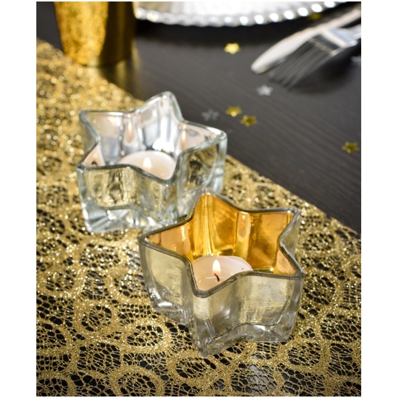 Photophore étoile or décoratif pour bougie chauffe plat, idéal pour la décoration de table, déco festive.