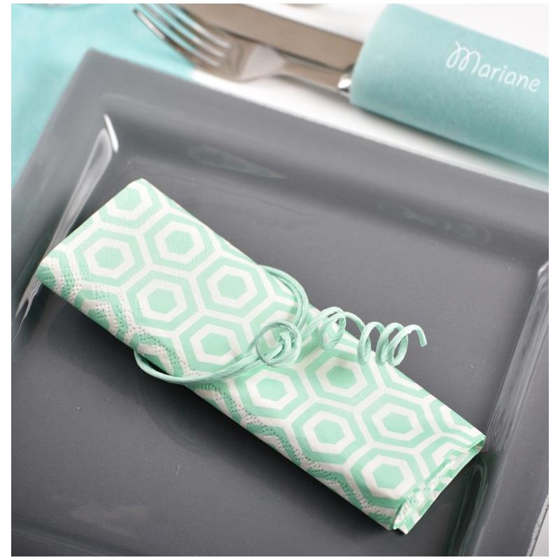 Cordon papier menthe (paper cord) pour décorer serviettes de table, en centre de table, plan de table. Idée ruban décoratif pour déco de table anniversaire, baptême, table festive, noël, mariage, baby shower, loisirs créatifs.