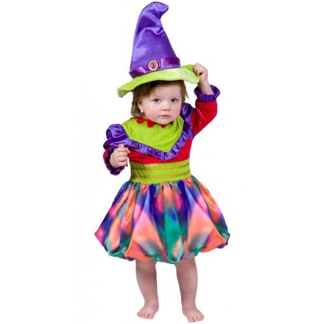 Déguisement sorcière bébé et fille : ce déguisement sorcière fille Halloween comprend la robe de sorcière multicouleurs et le chapeau de sorcière, déguisement sorcière enfant pour Halloween, fêtes déguisées, fêtes à thème sorcières, goûter d'enfant, spectacle, anniversaire.