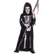 Déguisement squelette garçon : ce déguisement squelette garçon Halloween comprend la longue robe noire à capuche imprimé squelette blanc avec manches en lambeaux, déguisement enfant pour carnaval, fêtes déguisées, thème vampires.