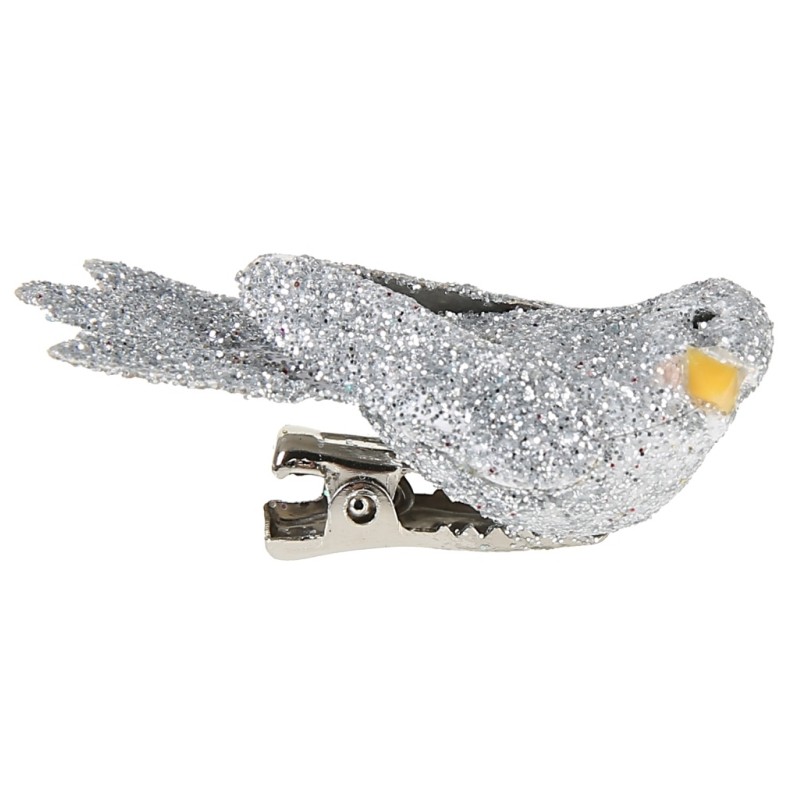 Oiseaux argent pailletés sur pince 4 cm les 2