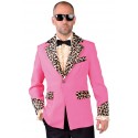 Ce déguisement homme comprend : une veste de costume (Colbert) rose fuchsia et léopard à manches longues en tissu, veste avec 2 poches latérales et une poche intérieure, revers du col, des manches et des poches en tissu léopard, fermeture de la veste à boutons noirs.