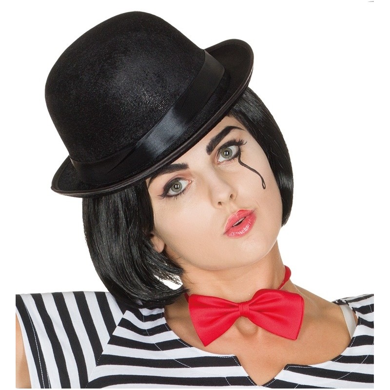 Chapeau melon noir adulte : ce chapeau melon noir adulte est en velours avec ruban satin noir, accessoire déguisement pour homme et femme. Idée carnaval, cabaret, show, spectacle, fêtes déguisées, nouvel an.