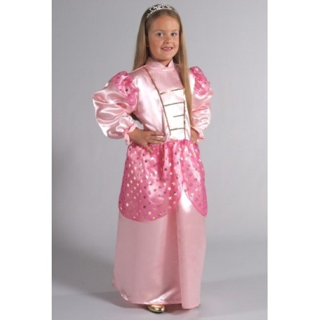Déguisement enfant qui comprend une robe de couleur rose à manches longues en satin, Bustier de la Robe avec Sequins Or étincellant(voir photo), Voile Rose en Organdi avec étoiles Or au niveau de la taille, fermeture zip au dos de la robe. (couronne diadème vendue séparément et autres accessoires non fournis).